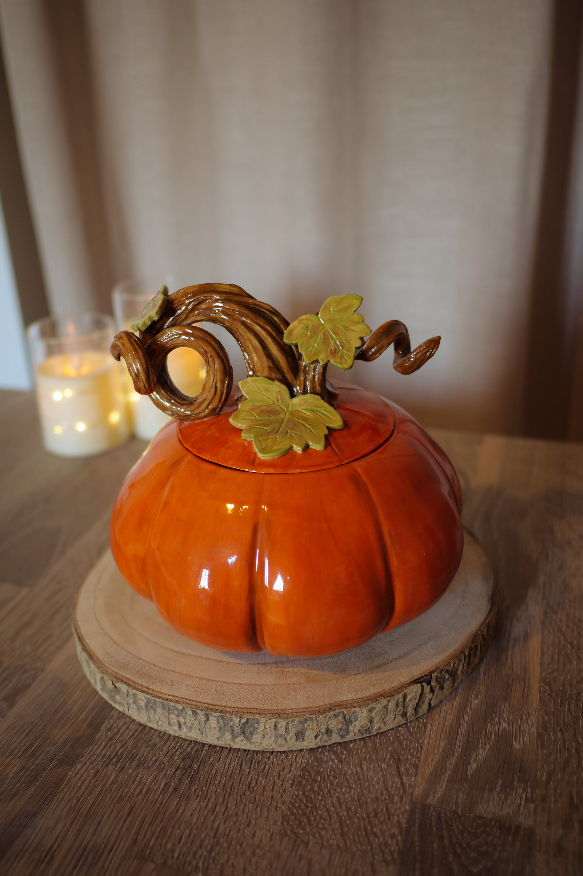 Boite citrouille en grès blanc faite à la main. Pièce réalisé au tournage et au modelage. La boîte est émaillée à l'intérieur à l'extérieur avec un email transparent brillant.