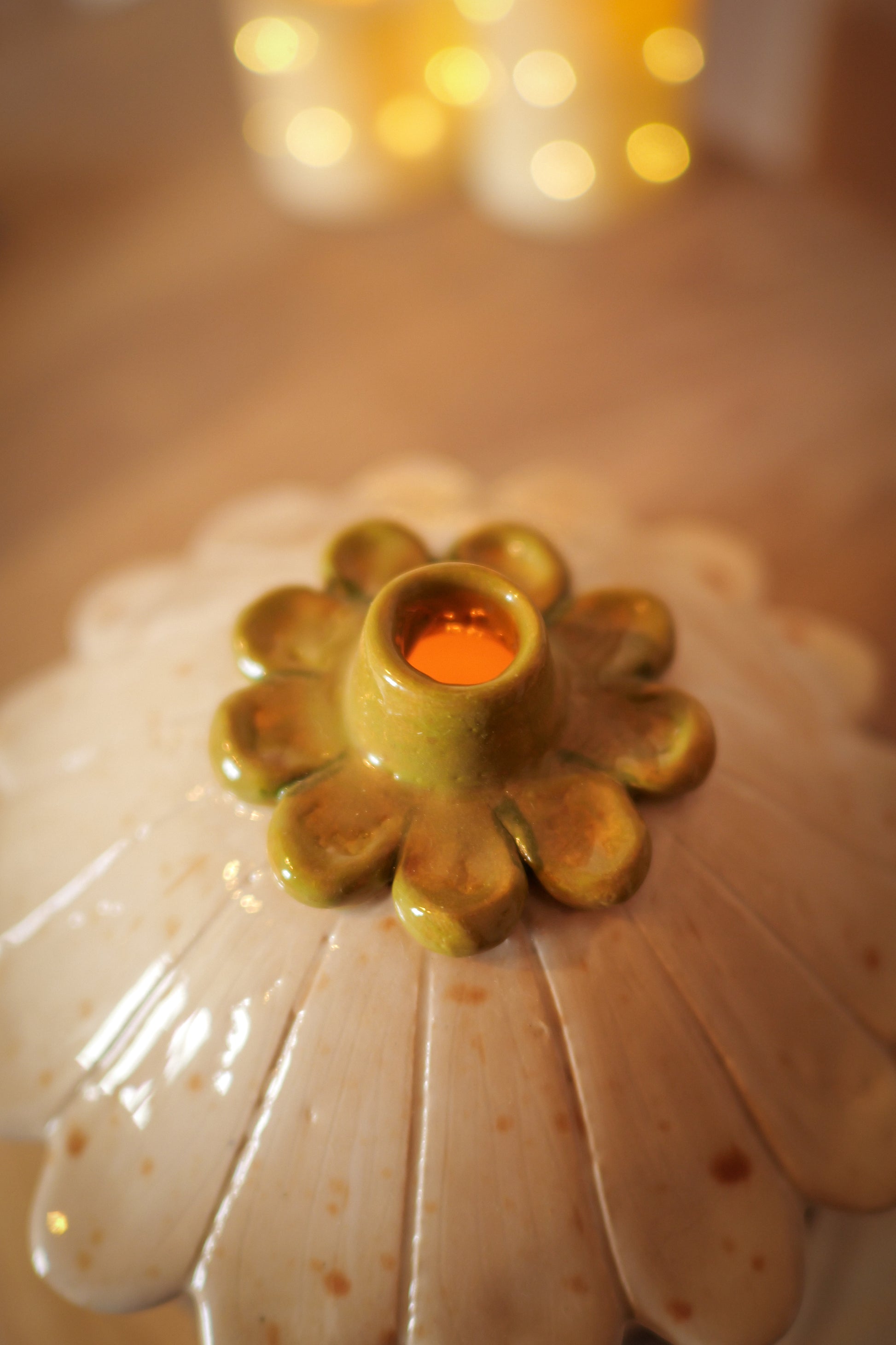 Petite fissure au niveau des pétales vertes sur le couvercle (voir photo) qui ne gêne absolument pas son utilisation et ne la fragilise pas.