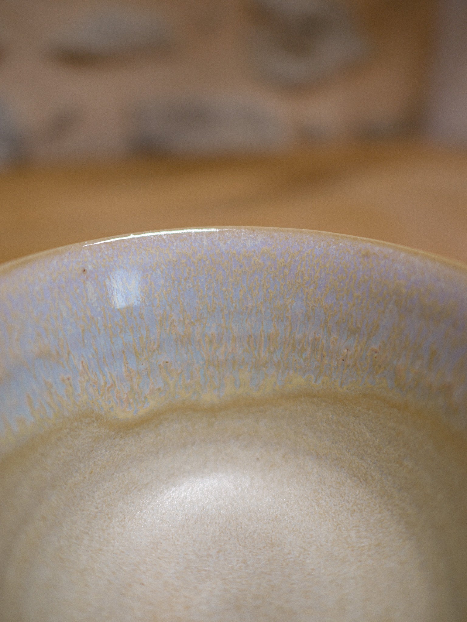 Email brillant sur la lèvre du bol et satiné dans le fond.