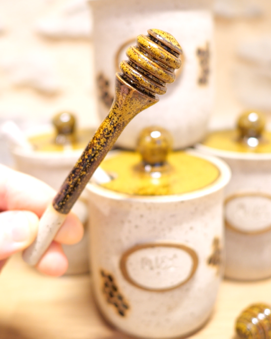 Le pot est vendu avec sa cuillère à miel en grès également.